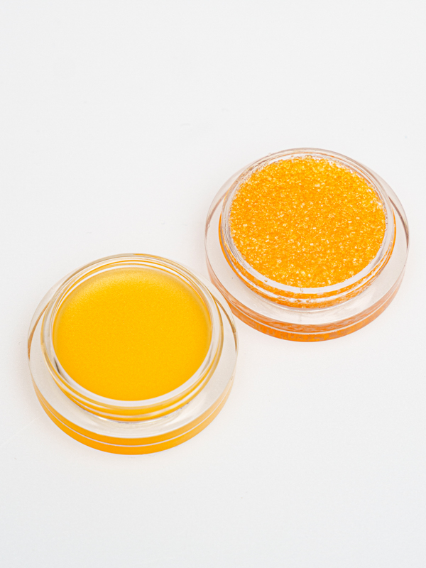 Διπλό προϊόν απολέπισης χειλιών vegan lip scrub και lip mask με γεύση και άρωμα Πορτοκάλι. Το lip scrub αφαιρεί απαλά τα νεκρά κύτταρα, διεγείρει την αιμάτωση στα χείλη, ενισχύοντας τον όγκο τους, ενώ προσφέρει απαλότητα και βελούδινη υφή. Η απαλή υφή της lip mask ενυδατώνει βαθιά τα χείλη κατά τη διάρκεια όλης της νύχτας και δρα σαν καταπραυντικό βάλσαμο.